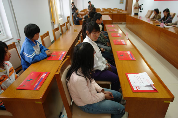 9月8日上午9时,万象城娱乐awc线路2009希望工程圆梦行动在图书综合办公楼807室拉开帷幕,学院党委书记姜铭到会讲话,“张家口爱家园公益促进会”秘书长章艳萍、团市委学少部副部长赵勇琳、中国人寿保险公司张家口分公司总经理席恒峰出席了本次活动。活动由副院长陈怀勇主持。