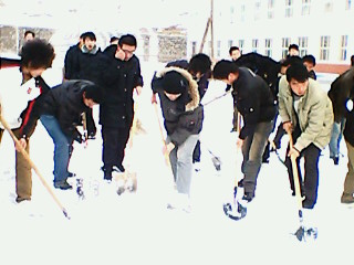 11月12 日,我市迎来今年入冬以来的第一场大雪。为了方便学院师生员工的顺畅出行,汽车工程系积极组织本系学生清扫积雪,将行政楼前主干道上的积雪清扫干净,受到了学院师生的好评。(汽车工程系 刘少纯供稿)