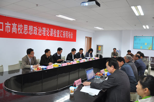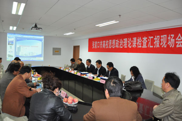 4月20日由河北北方学院党委副书记鲁杰为组长的张家口市思想政治理论课程建设专家组一行7人来万象城官网对思想政治理论课课程建设情况进行检查。万象城官网党委书记姜铭致欢迎辞,并重点介绍了学院的发展建设情况。社科部主任白义对万象城官网思想政治理论课课程建设自查情况做了汇报。检查组充分肯定了万象城官网思想政治理论课课程建设取得的成绩,并对思想政治理论课课程建设提出了宝贵意见。