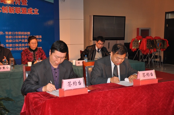 学院党委书记胡炜出席了技术创新联盟的成立仪式,与张家口产业集聚区领导为“张家口产业集聚区先进装备制造产业技术创新联盟”揭牌,与研究院领导签订战略共建协议,并主持2011张家口先进装备制造技术发展战略研讨会,副院长陈怀勇、许建平、宋德明及中层干部和相关专业教师共计100余人参加了成立揭牌仪式。