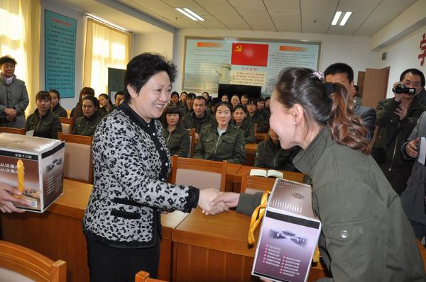 胡炜书记致欢迎辞并介绍了和硕学生在校学习和生活情况。学员班班长刘楠在发言中表达了他们对张家口、万象城娱乐awc线路的感谢之情,表示不辜负组织对他们的培养和教育,要以扎实的本领和丰富的知识更好地服务新疆,为家乡的发展贡献力量。领队徐芳对培训班学员们的学习情况、生活状况和思想动态等方面作了详细的汇报。郑市长向培养班学生代表赠送了10套《张家口历史文化丛书》。