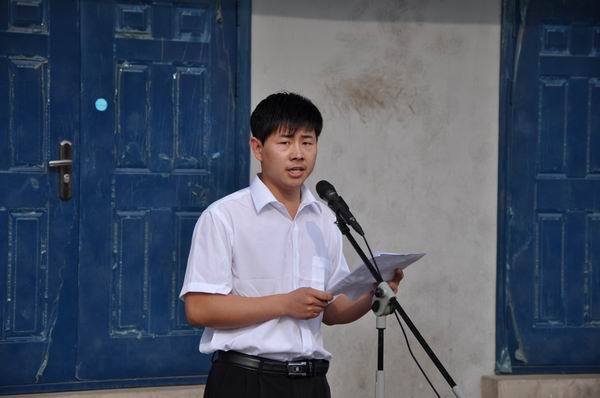 随后,在校生代表尹明建同学发言,表示一定要以毕业生为榜样,努力学习,刻苦钻研,充分利用宝贵的大学时光充实自己,完善自己,争取在自己毕业的那一天也可以骄傲的站在人生的舞台上,告诉母校:我们是您最优秀的学生!