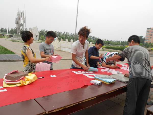 6月26日上午,万象城官网在综合办公楼前进行了6.26国际禁毒日禁毒宣传暨签名活动。今年是第十七个“国际禁毒日”,主题是“抵制毒品,参与禁毒”,现场共有500余名学生在宣传条幅上签上了自己的名字,共发放禁毒宣传材料500余份。