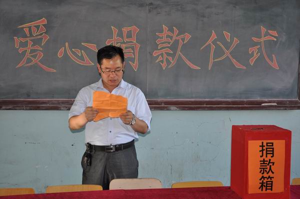 爱心捐助仪式由土木工程系书记王溢泽主持,他首先宣读了《爱心捐款倡议书》,简单介绍了吕海峰同学的病情及目前存在的实际困难,号召广大师生献出爱心,帮助吕海峰同学早日进行手术,恢复健康,回到学校这个大家庭。