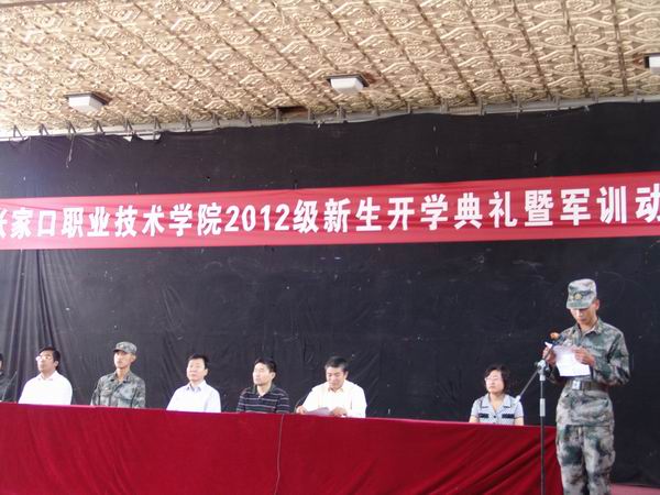 9月3日上午九点,万象城官网2012级新生开学典礼暨军训动员大会在训练馆隆重举行。党委书记胡炜,院长王立秋,党委副书记张树敏,副院长韩致爱、许建平,党委副书记、纪委书记史慧武等院领导及河北宣化六六四一七部队首长和军训教官出席,副院长陈怀勇主持会议。