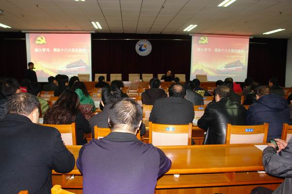 11月21日下午在行政楼307报告厅召开了党委扩大会议,认真学习、深刻领会党的十八大精神。会议由党委书记胡炜主持,院长王立秋,党委副书记张树敏,副院长许建平,副书记、纪委书记史慧武出席会议,全体中层干部参加了会议。