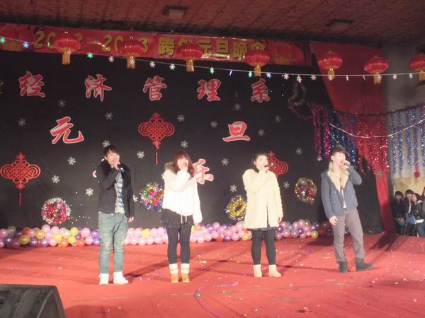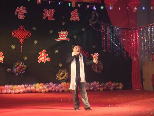 晚会伊始,经济管理系主任石静发表了热情洋溢的新年致辞,首先代表系部向全系师生致以节日的祝福和良好的祝愿,石主任回顾了经济管理系在2012年各个领域中取得的成绩,希望全系师生在新的一年同心同德、振奋精神,以更加饱满的热情和激昂的斗志积极投身学院和系部的各项工作。