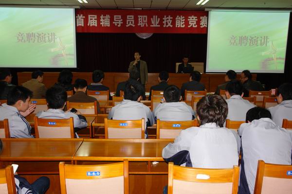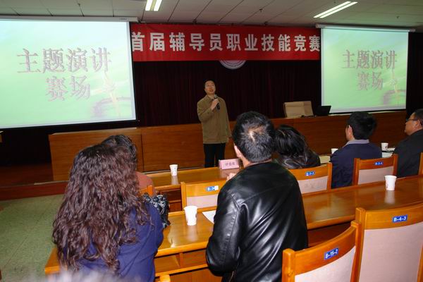 由学工处主办的首届辅导员职业技能竞赛,继4月1日进行了基础知识的测试后,情景案例分析、班情熟知、主题演讲等四项比赛分别于4月16-17日下午,在学院综合办公楼307报告厅举行。各教学系认真组织,积极参与,部分系部、行政科室负责人担任评委,学院党委书记胡炜、院长王立秋、纪委书记史慧武亲临现场观看指导。