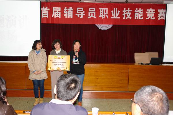 在比赛结束后,学院领导亲自为取得优异成绩的代表队颁奖。胡炜书记做了重要的讲话,他对本次竞赛的举办给予了高度评价,对获奖代表队表示热烈地祝贺。他强调,高职院校教书育人密不可分、缺一不可,本次竞赛就是从育人的角度出发。竞赛的成功举办定会提升学院学生管理的整体水平,提高辅导员的素质能力,为更好的培养学生德、智、体全面发展,促进培养高技能人才起到推动作用。他希望今后继续扩大辅导员职业技能竞赛的成果,为促进学院科学发展,争创一流再上新台阶。