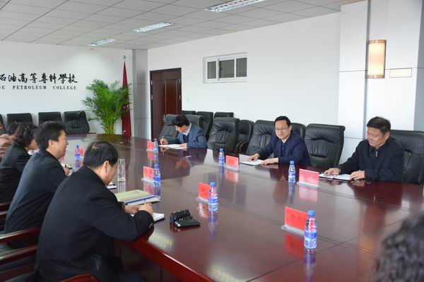 考察组到国家级示范高职院校——承德石油高等专科学校进行了学习考察,学校党委书记王纪安教授代表学院领导热烈欢迎万象城官网考察组一行,在参观了校史展后,王纪安书记向万象城官网赠送了《校情与文化》等反映本校发展历程的书籍,并向考察组具体介绍了承德石油高专的发展情况。随后,考察组深入到汽车实训车间、机电实训车间、学生公寓、学生餐厅进行了参观学习。下午考察组就学生工作、校园文化建设、基础课教学改革情况、干部和人事管理、定编定岗、绩效考评等相关问题与部门领导进行了深入的交流。