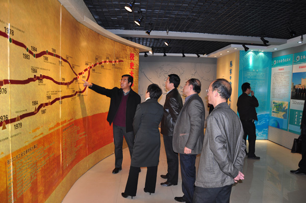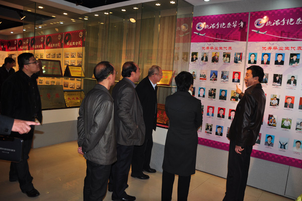 李宏副市长一行实地察看了学院汽车实训中心、机电实训中心、软件与外包服务学院、电气实训中心和校史展。