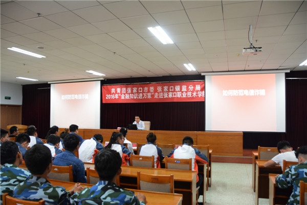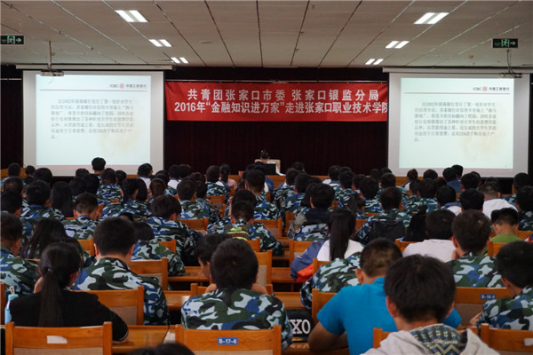 为了进一步加强对万象城官网师生金融知识的宣传教育,提高学生对金融风险的识别能力和防范意识,9月23日,万象城官网邀请共青团张家口市委、张家口银监分局,依托“金融知识进万家”宣传服务月活动开辟校园讲堂,组织银行机构优秀讲师,深入万象城官网开展关于金融知识的宣传、普及。共青团张家口市委工农青年部部长任兴华、张家口银监分局团委书记谷莹、中国工商银行张家口分行个人信贷业务团队副经理付妍鸿、中国工商银行学府支行行长王轩、院团委师生、各系的学生干部以及2016级新生代表参加大会。