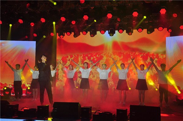 “青春心向党 建功新时代”主题演出共分为 “百年峥嵘 铭记荣耀”、“薪火相传 砥砺前行”和“不负韶华 青春逐梦” 三个篇章。演出在诗朗诵《艰难的国运与雄健的国民》中揭开帷幕,大合唱《保卫黄河》,气势恢宏,渗透出中华儿女保家卫国的坚强决心;话剧《托起明天的希望》回顾了数代青年人前赴后继、不懈奋斗的峥嵘岁月;独唱《红旗飘飘》、《龙的传人》歌声嘹亮,震撼人心;舞蹈《我爱你中国》、《芳华》、《天边》美轮美奂,韵味十足,抒发出对祖国母亲深沉的爱;朗诵《五四,我们的节日》、舞蹈《青春韵动》、歌曲《改变自己》、《海阔天空》、《我们都是追梦人》,精心编排的节目在展示出当代大学生昂扬向上的蓬勃朝气的同时,也在诉说着青春的情怀,表达着青年人对生活的承诺和担当。