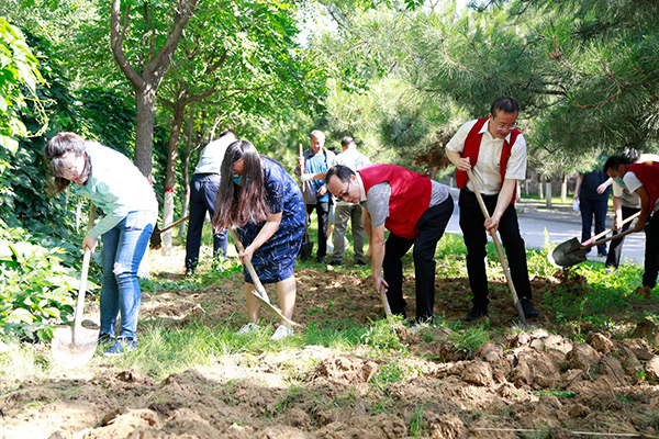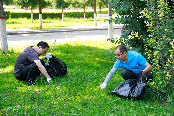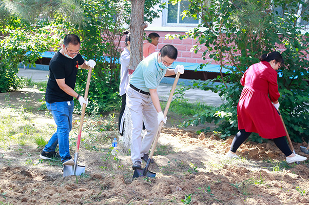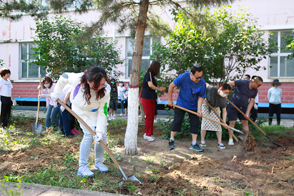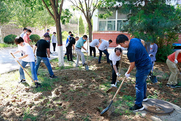6月30日上午,学院党委成员、各党支部委员和党员代表共计100余人,分4个区域对图书综合楼南侧三处板结绿地和周边区域环境进行了翻土、除草,对校园内残存的垃圾进行了捡拾清理。