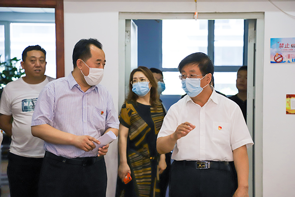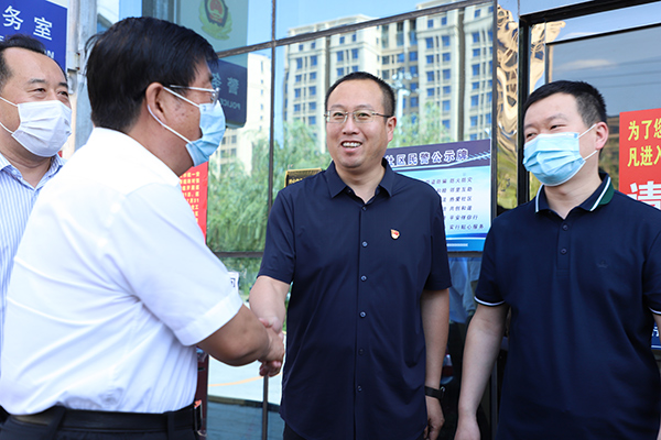 冯印涛一行在经开区党工委委员、政法委书记马文,党工委委员、党政办主任康金和张家口微臣网络科技有限公司总经理肖建宏陪同下,参观了经开区行政审批局“网上经开,身边政府”响应中心,详细了解了中心的运行情况;到南站街道世纪路社区服务中心,了解了社区党建引领基层治理及疫情期间社区网络化管理工作开展情况;在张家口微臣网络科技有限公司现代物流园区建设工地进行了参观调研。