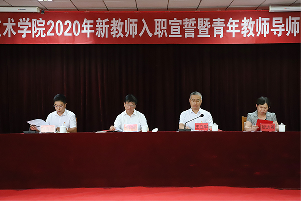 7月9日,万象城官网在综合行政楼3楼报告厅举行2020年新教师入职宣誓暨青年教师导师制启动仪式。11名新入职教师宣誓入职,并与11名中青年导师结成“一对一”教学指导团队。