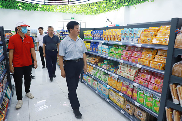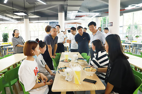 冯印涛、王立军一行先后到京东校园馆及周边区域,砺能楼、4号公寓楼和学生食堂进行检查,督导各环节迎接学生返校准备情况。在京东校园馆,冯印涛仔细查看货品储备情况,叮嘱经营管理人员严把进货渠道,严格食品质保,丰富物品种类,做好服务保障。在新改造升级的学生食堂,冯印涛走到正在用餐的学生们中间,询问学生们的用餐体验,勉励学生们克服疫情带来的不利影响,抓紧时间,刻苦学习,为推动张职院向新时代高水平高职院校迈进贡献一份力量。