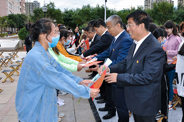 2019年硕博引进人才、机械工程系教师胡依平,2020年河北省师德标兵、信息工程系教授陈淑敏代表新老教师作了发言。校学生会主席、经济管理系学生宫兴冉作为学生代表作了发言。