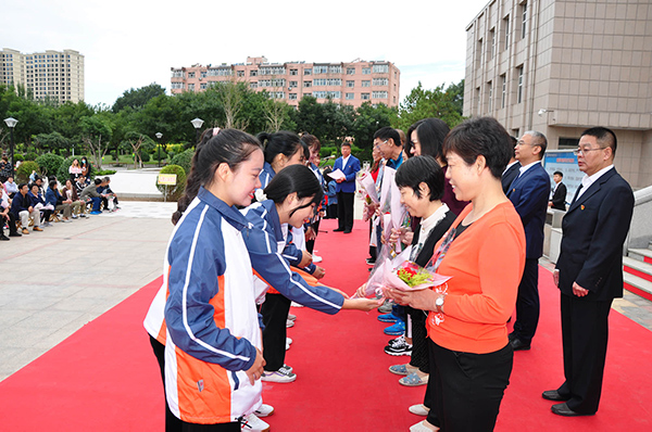 13名获“疫情防控表现突出人员”奖教师、99名“从教三十年”优秀教师、40名2020学年度荣获市级以上奖励教师受到表彰。各系学生代表向受表彰人员及全体教职员工献上了鲜花。