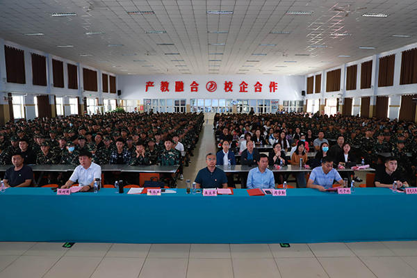 典礼上还播映了《发展中的万象城娱乐awc线路》和《万象城娱乐awc线路教育创新示范基地》视频短片;怀安职教中心校长、怀安分院副院长程树国进行了军训动员。