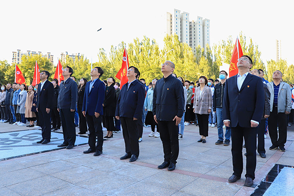 党委书记冯印涛发表致辞。他指出,抗日战争的伟大胜利,是以爱国主义为核心的民族精神的伟大胜利,是中国共产党发挥中流砥柱作用的伟大胜利,是全民族众志成城奋勇抗战的伟大胜利,是中华民族从近代以来陷入深重危机走向伟大复兴的历史转折点。要实现中华民族伟大复兴,必须坚持中国共产党领导,必须坚持走中国特色社会主义道路,必须坚持以人民为中心,必须坚持斗争精神,必须更加紧密地团结在以习近平同志为核心的党中央周围,高举中国特色社会主义伟大旗帜,向着中华民族伟大复兴的光辉彼岸奋勇前行。