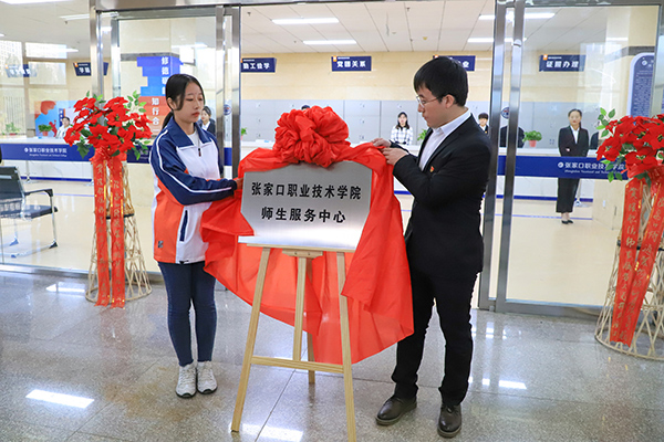 土木工程系教师张幼鹤、应用外语系学生孙依婷作为特邀嘉宾为“师生服务中心”揭牌。