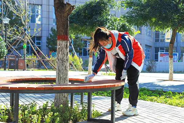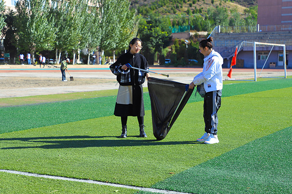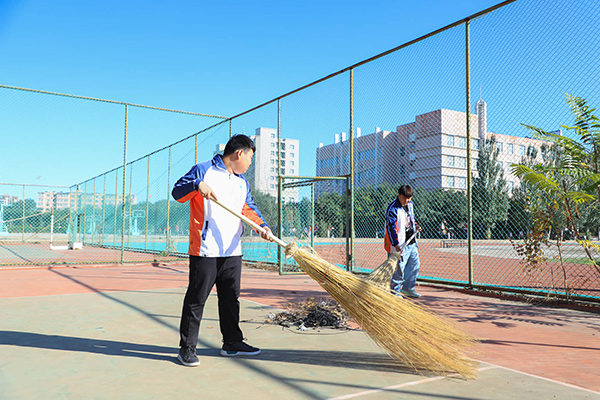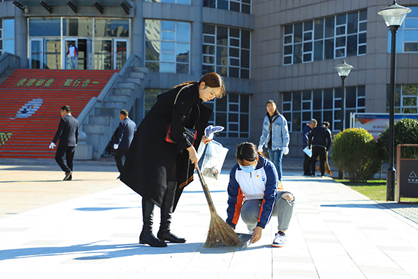 各系、部和行政处室的教职员工带领学生们早早来到各自负责清扫区域,对隐匿在每一处角落里的废纸、烟蒂、塑料袋进行仔细清理,对掉落的枯枝杂草进行集中打扫,统一处理,确保不留卫生死角。劳动中,大家热情高涨,干劲十足,充分展现出广大师生积极向上的精神风貌。