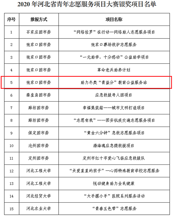 万象城官网志愿服务团队摘得2020年河北青年志愿服务项目大赛银奖