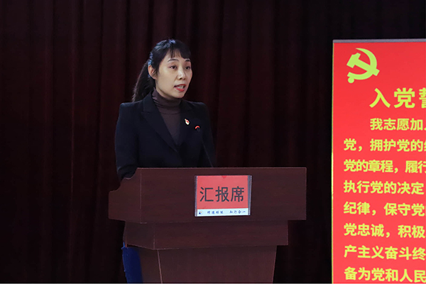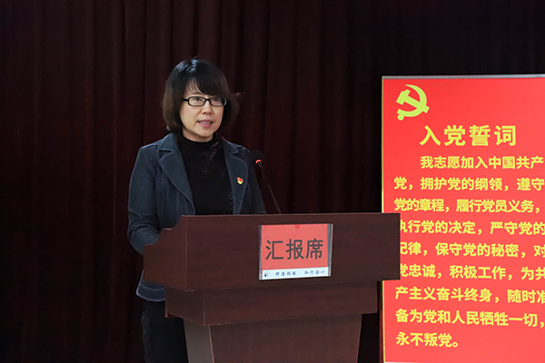 机关党总支常务副书记、群众工作处处长安珊珊代表党总支书记发言,机械工程系党总支书记、主任许艳霞代表教学系部发言。