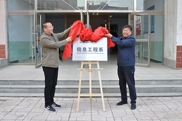 授章、授牌仪式结束后,学院领导王立军、杨汝明、李炜杰、胡伟奇、刘子林分两组赴八个教学系参加系部挂牌仪式,并参观了各系党建活动室、门厅文化、专业教研室,了解了各系专业课程设置、系部文化建设、师资力量建设、专业书籍储备以及新生报到等情况。