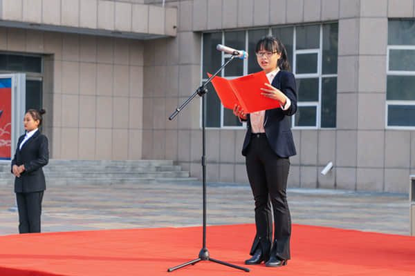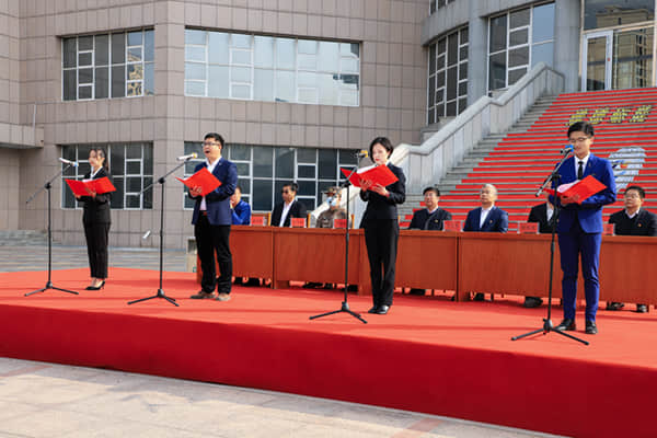 大会在庄严的升国旗仪式中拉开序幕。伴随着雄壮的《义勇军进行曲》响起,鲜艳的五星红旗冉冉升至杆顶,全体人员面向国旗行注目礼,肃立致敬。