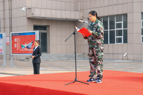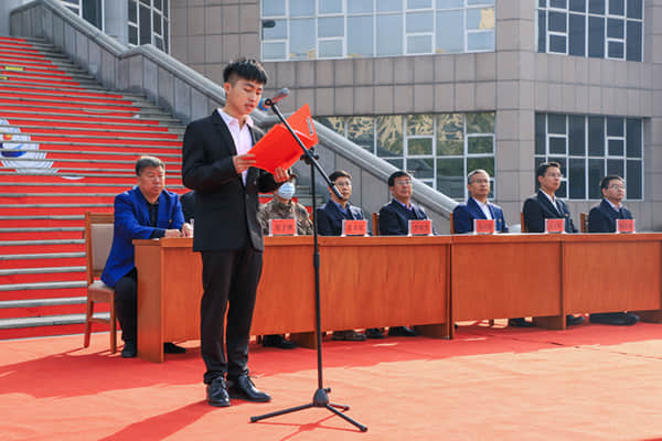 在河北省高职院校职业技能大赛教学能力比赛中荣获团体二等奖的土木工程系教师张丽敏、在河北省健美操锦标赛中获得大学组第一名和优秀运动员称号的应用外语系2019级学生邢甜梦、在大学期间参军入伍并赴江西九江参加抗洪的土木工程系毕业生吴炳江、母亲赴武汉参与抗击新冠疫情工作的经济管理系2020级新生刘凯然和参训教官余祥祥分别代表优秀教师、优秀毕业生、2019级和2020级学生、军训教官作了发言。