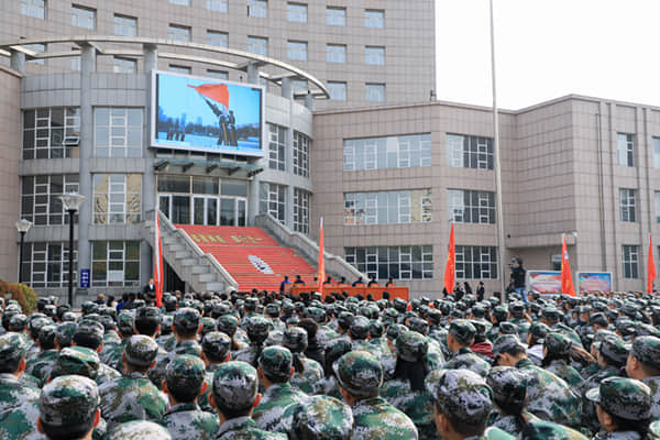 党委副书记杨汝明主持大会,全体中层干部和三级科室负责人、2020级辅导员和全体新生、承训部队教官共计4000余人参加。