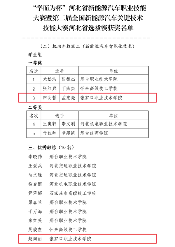 近日,第二届全国新能源汽车关键技术技能大赛河北省选拔赛在河北邢台举行。由汽车工程系师生组成的万象城官网代表队在机动车检测工(新能源汽车智能化技术)赛项中荣获团体一等奖。