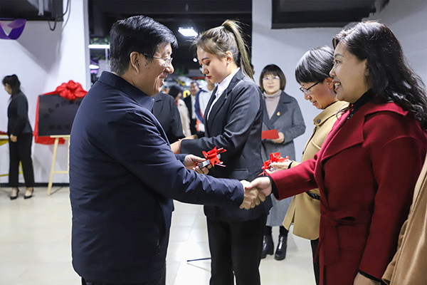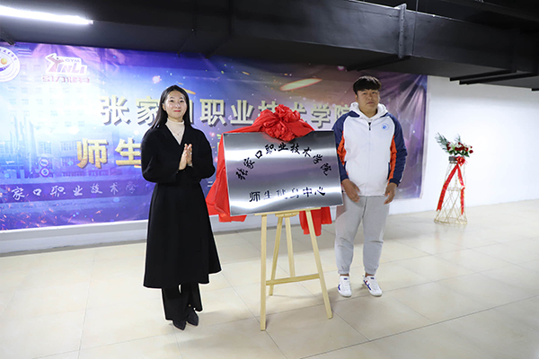 仪式上,学院团委书记金铭钰和应用外语系2019级高铁3班武博洋作为师生代表共同为师生健身中心揭牌。