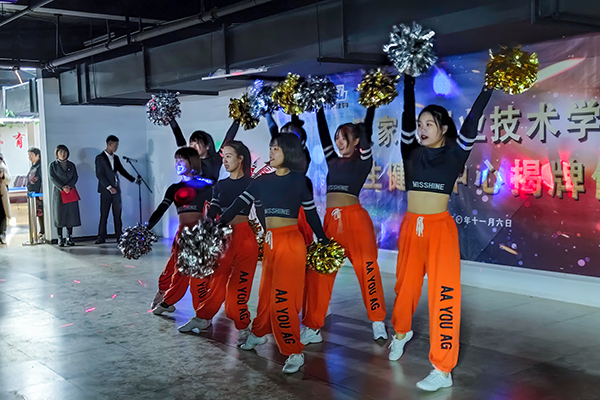 师生健身中心承办单位引力健身中心负责人惠强介绍师生健身中心概况;在2020年河北省青少年健美操锦标赛中荣获河北省健美操锦标赛大学组一等奖的学院健美操队奉献了精彩的健美操表演。