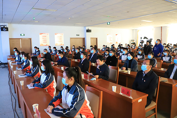 各系党总支书记、团总支书记及学生、新闻媒体代表共计130余人现场参加了活动。300余师生通过户外LED大屏收看了实况直播。