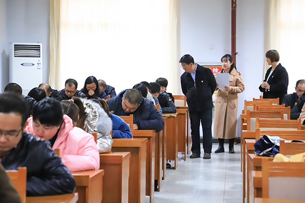 学院纪检监察审计相关人员宣读了《测试纪律》。党委书记冯印涛与工作人员共同监考,党委委员纪委书记周文胜主持进行了考后阅卷。