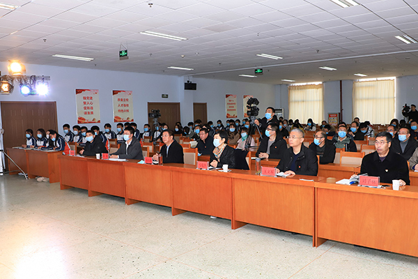 市委宣传部副部长弓爱萍、学院党委书记冯印涛、院长王立军、副院长刘子林、省委宣传部理论处主任科员黄俊及市委宣传部相关科室负责人、学院全体中层干部、教师代表、学生代表共计130余人聆听了宣讲。