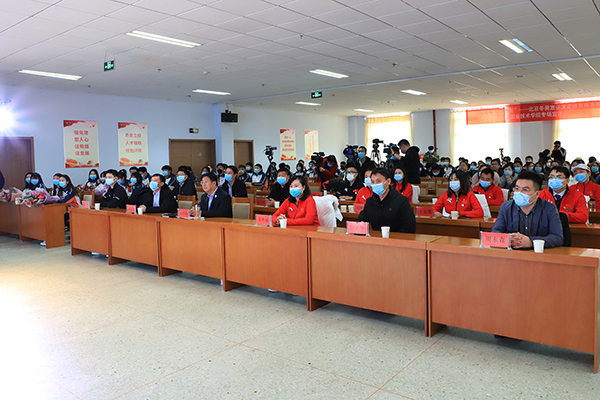 北京冬奥组委志愿者部副部长曲圆、团省委志愿者工作部周永森、中共北京市委讲师团领队徐艳丽、共青团张家口市委副书记温旭春;学院党委书记副书记杨汝明、副院长胡伟奇、纪委书记周文胜出席宣讲活动。各系党总支书记、团总支书记、崇礼团区委青年骨干志愿者代表、学院与崇礼分院骨干教师志愿者、学生骨干志愿者共计170余人现场聆听了报告。