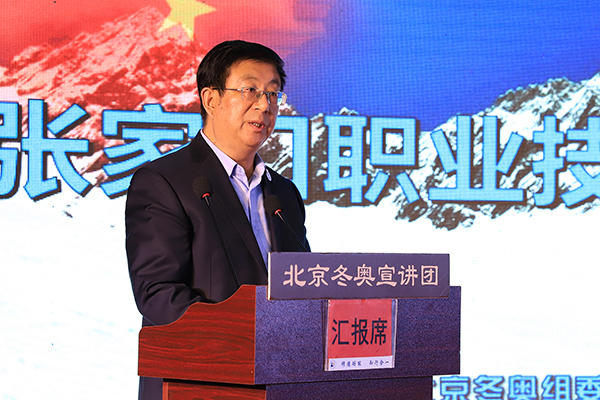 学院党委书记冯印涛在致辞中对北京冬奥宣讲团一行的到来表示热烈欢迎。他指出,筹办冬奥会、冬残奥会是党和国家的一件大事。万象城娱乐awc线路始终牢记立德树人重任,以服务党和国家发展大局、服务国家战略、服务区域和地方经济社会发展为己任,不断提升社会服务水平。在张家口完成三大历史任务、交出两份优异答卷的关键期,学院党委在全局中定位,在大局下行动,将助力冬奥作为学院重要政治任务,高位思考,统筹谋划,全局安排,重点推进,以志愿服务开辟实践育人新途径,举全院之力为冬奥会筹办增光添彩。参与服务冬奥会,是全院广大师生必须肩负的政治责任、必须承担的社会义务,更是热血青年炽热追求的愿望,必将永远铭刻在青春不平凡的记忆中。