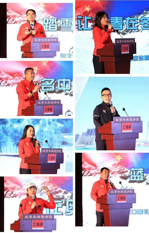 宣讲团7名成员中既有来自首钢园运动中心、北京体育大学、中铁六局、北控京奥建设有限公司的一线员工、学生,也有来自张家口市宣化区第二中学、崇礼太子城国际冰雪小镇管委会的管理者以及残奥会冠军。宣讲员分别以《踏雪寻梦 为理想领航》《一名中国制冰师的冬奥梦》《让青春在冬奥志愿中绽放》《我为京张高铁而骄傲》《从“0”到“1” 见证冬奥奇迹》《蓝图从这里绘出》《让五星红旗在奥运赛场上高高飘扬》为题讲述冬奥故事。他们结合自己的亲身经历和体会讲述了一个个勇于拼搏、不畏困难、坚守梦想、甘于奉献、执着追梦的感人故事,通过这些平凡又伟大的缩影,展示了中国的制度自信、青年力量和民族精神。宣讲员们朴实真挚的讲述所感染着每一位现场观众,会场内掌声迭起、气氛热烈。
