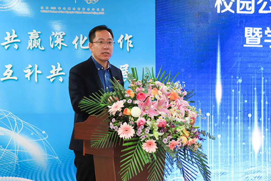 西安新路网络科技有限公司总经理韩军代表施工企业作了致辞;中国联通张家口分公司副总经理段宏毅就张职院校园公寓、综合行政楼网络改造项目作了介绍;学院党委副书记杨汝明主持仪式,并就学院新版官网、官方抖音号情况介绍。
