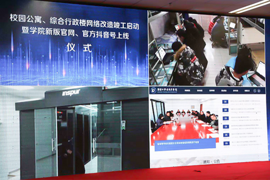 12月15日,学院校园公寓、综合行政楼网络改造竣工启动暨学院新版官网、官方抖音号上线仪式在综合楼三楼报告厅举行。学院党委书记冯印涛、院长王立军、中国联通张家口分公司总经理仝博、西安新路网络科技有限公司总经理韩军在大屏幕上按下手印,共同启动校园公寓、综合行政楼网络,为学院新版官网、官方抖音号正式上线助推。