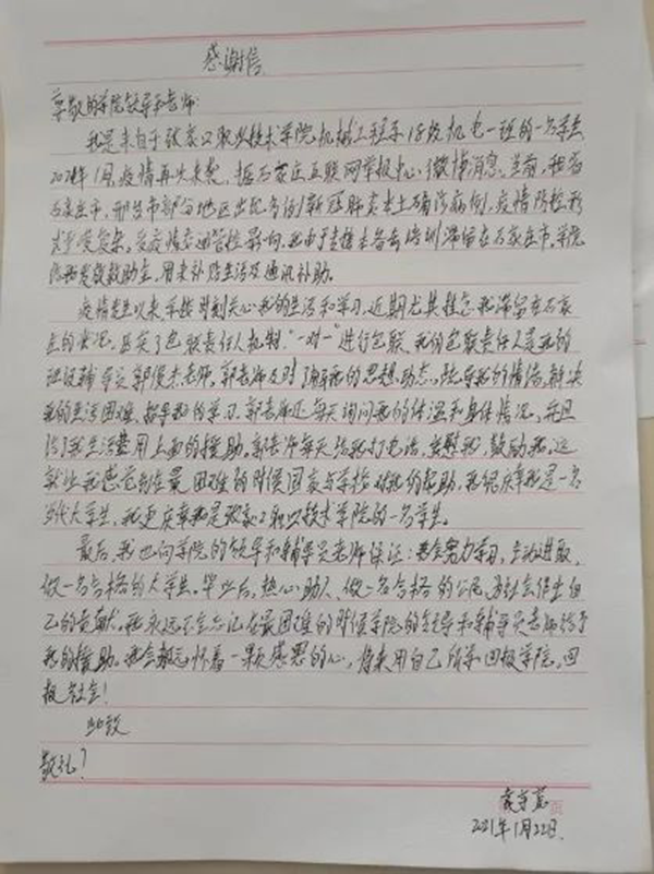 -学院收到来自学生的感谢信-