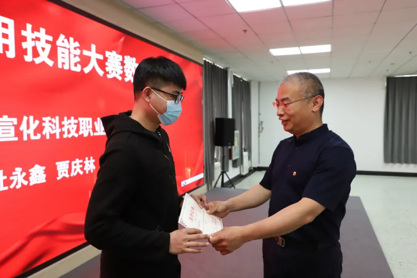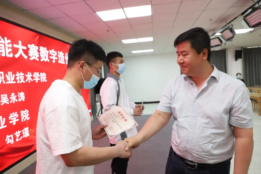 院长王立军、宣化科技职业学院副院长杜晓鸣、河北工业职业技术学院宣钢分院副院长王东卫、广联达科技股份有限公司数字高校BU华北大区总经理王光思为获得一等奖的两支团队、二等奖四支团队、三等奖六支团队颁奖。