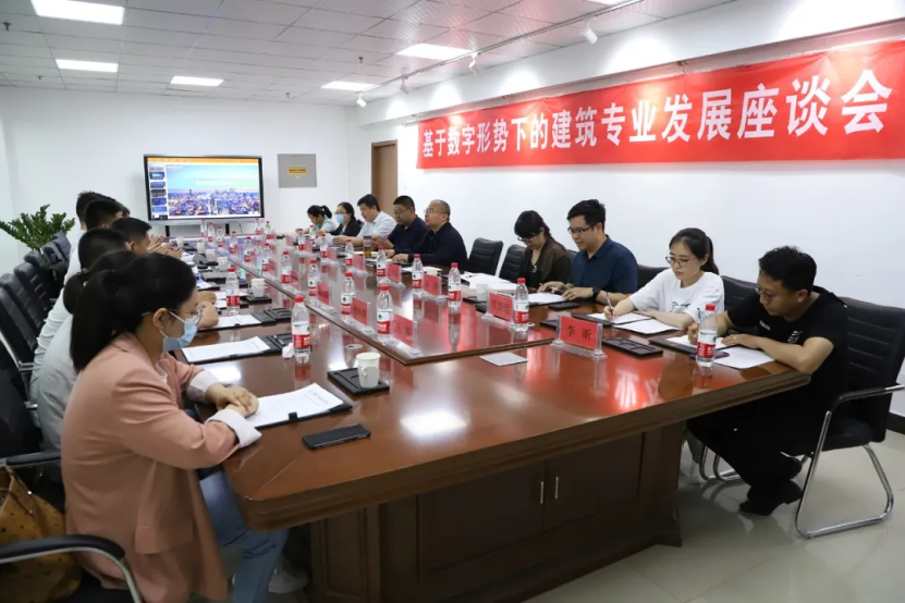 颁奖仪式后,三院校领导、大赛主要筹备人员及教师代表在万象城官网知行楼六楼会议室召开了基于数字形势下的建筑专业发展座谈会,与会嘉宾就深化产教融合、校企合作、专业建设及资源共享等问题进行了深入交流和探讨。
