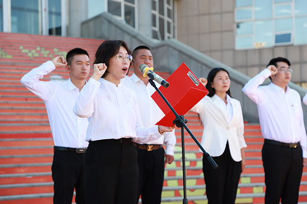 在2020年下半年新入职教师宣誓仪式中,优秀教师代表李婵带领13名新入职教师共同宣读入职誓言。