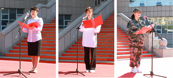 来自马克思主义学院的优秀教师代表田淑贞、被评选为2022年北京冬奥会志愿者的土木工程系学生郝思颖,获评省级三好学生、市级优秀共青团员的信息工程与艺术设计学院学生邵梦鑫分别作了表态发言。