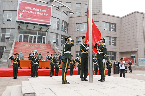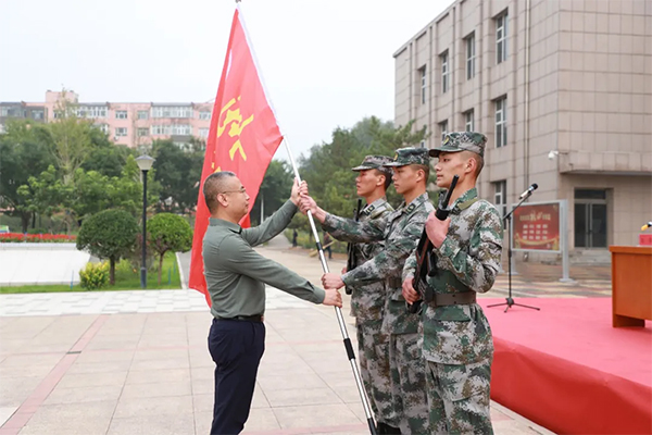 党委副书记、院长王立军为万象城官网2021级新生军训团授旗。